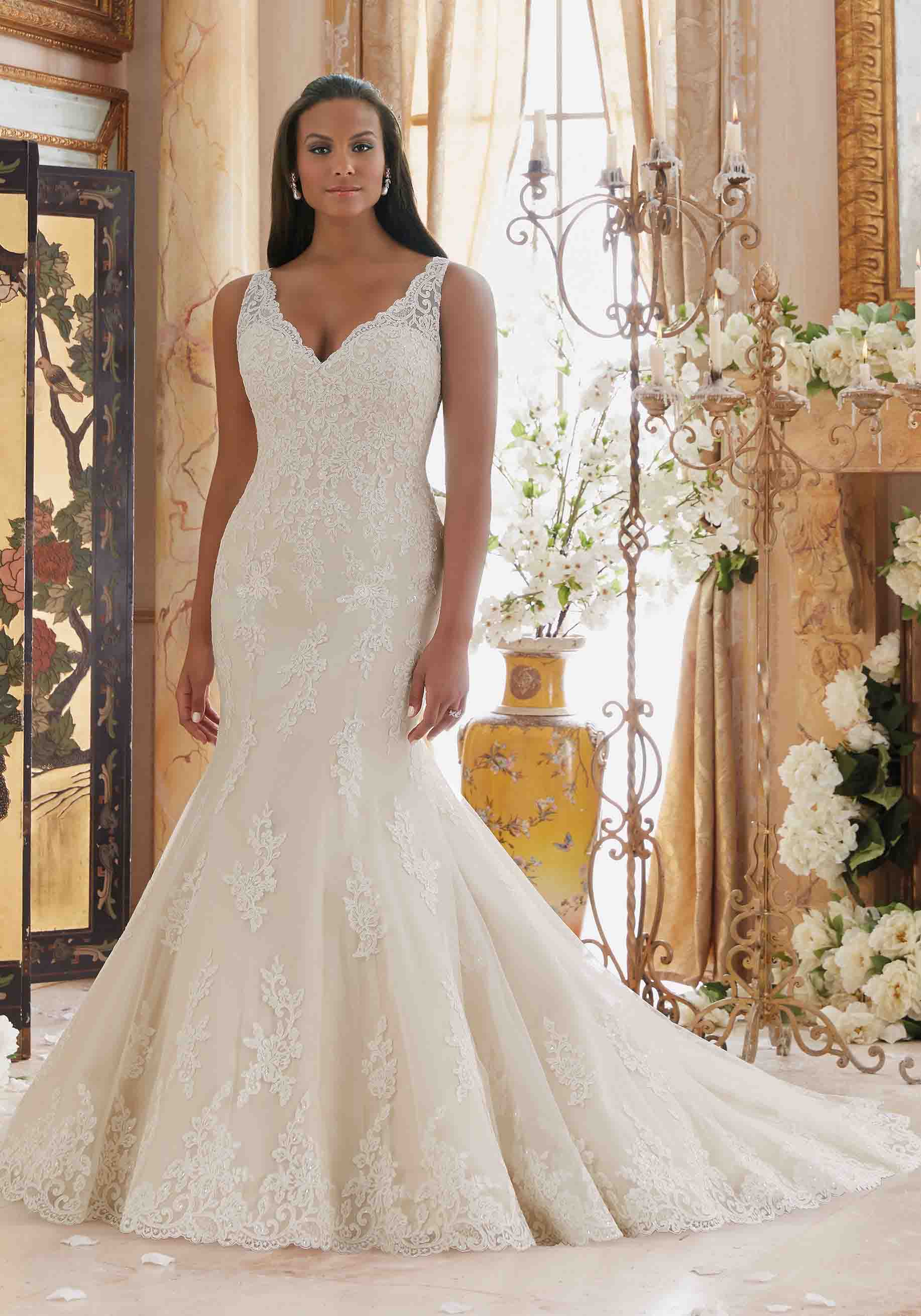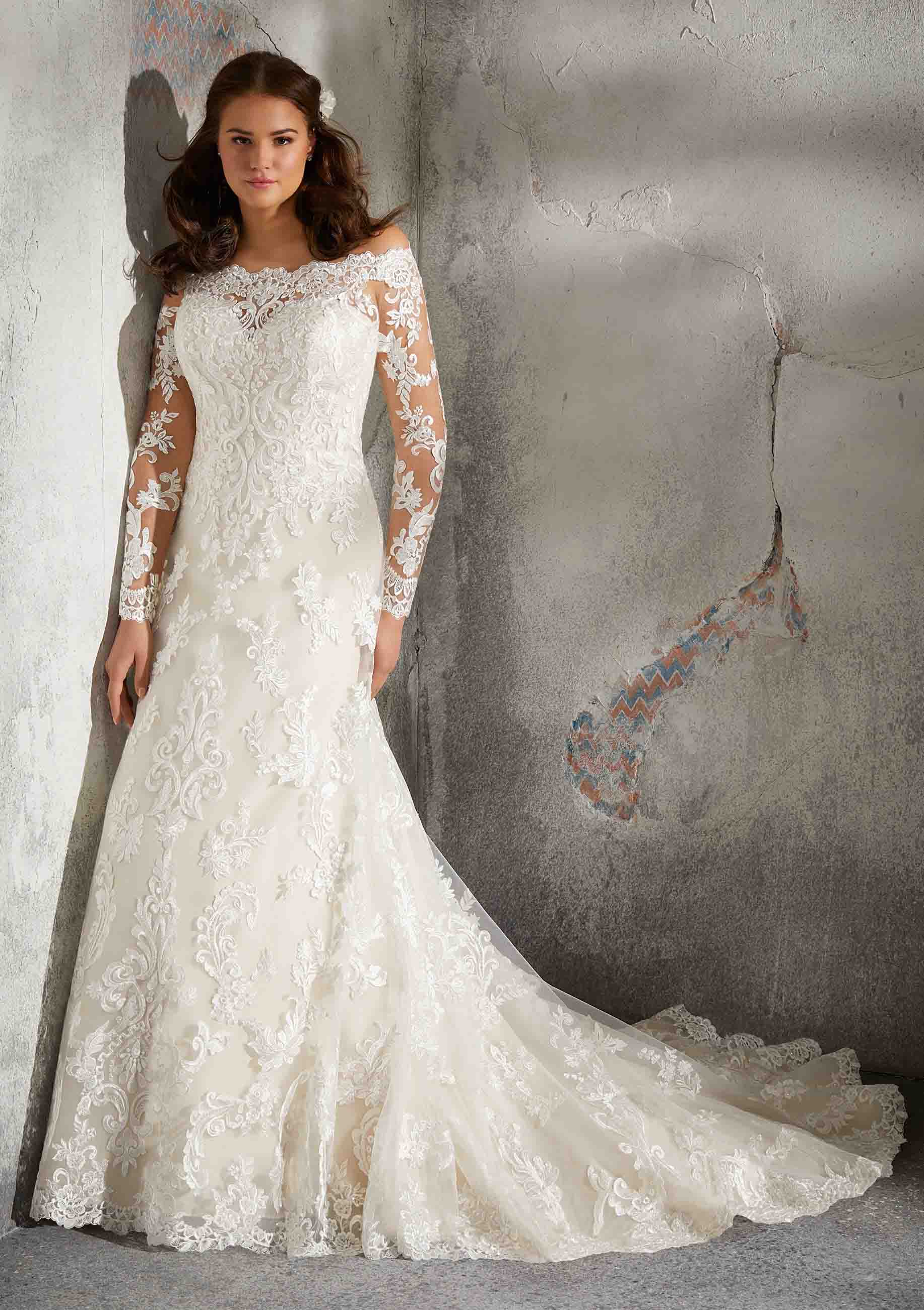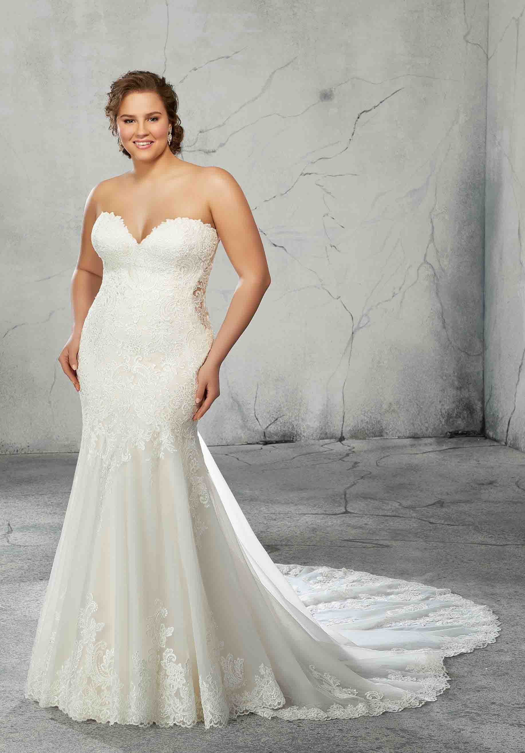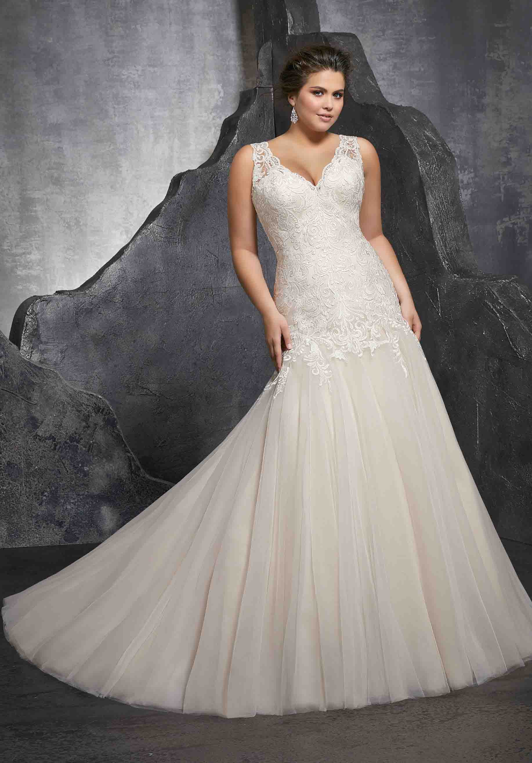 Abito da sposa in avorio dall’inconfondibile tonalità calda molto amata dalle spose. Il modello a sirena dal lungo corpetto completamente in pizzo con generosa scollatura impreziosita sia dalla velatura del pizzo all’incrocio del decolté’ in trasparenza, sia dal gioco delle applicazioni ne rende unico l’effetto. La gonna è una esplosione di tulle che scendendo dalla base del lungo corpetto, allargandosi a ruota intera magicamente fa sognare.