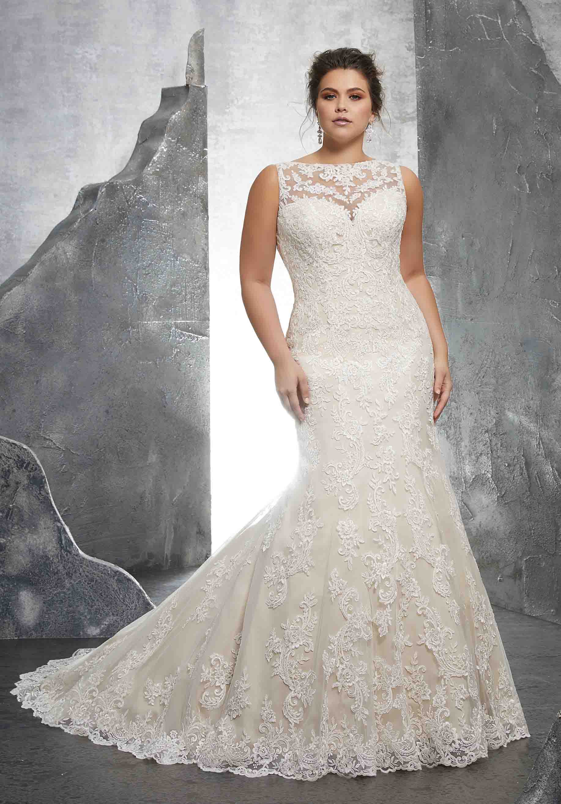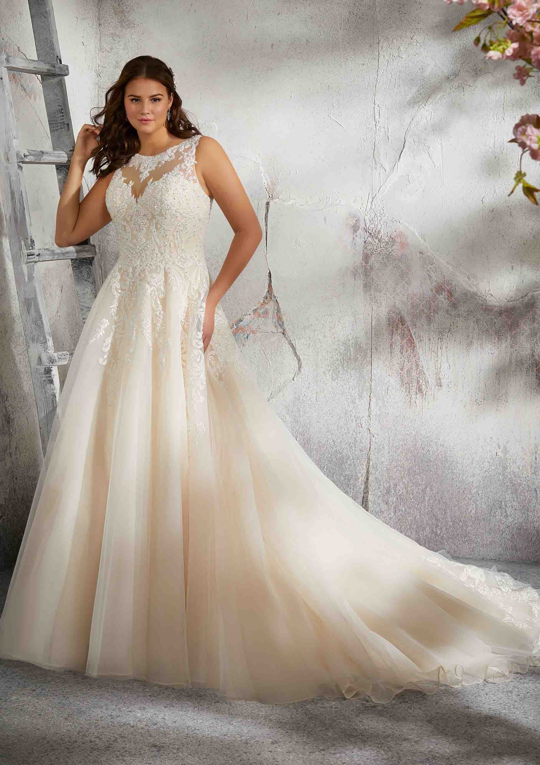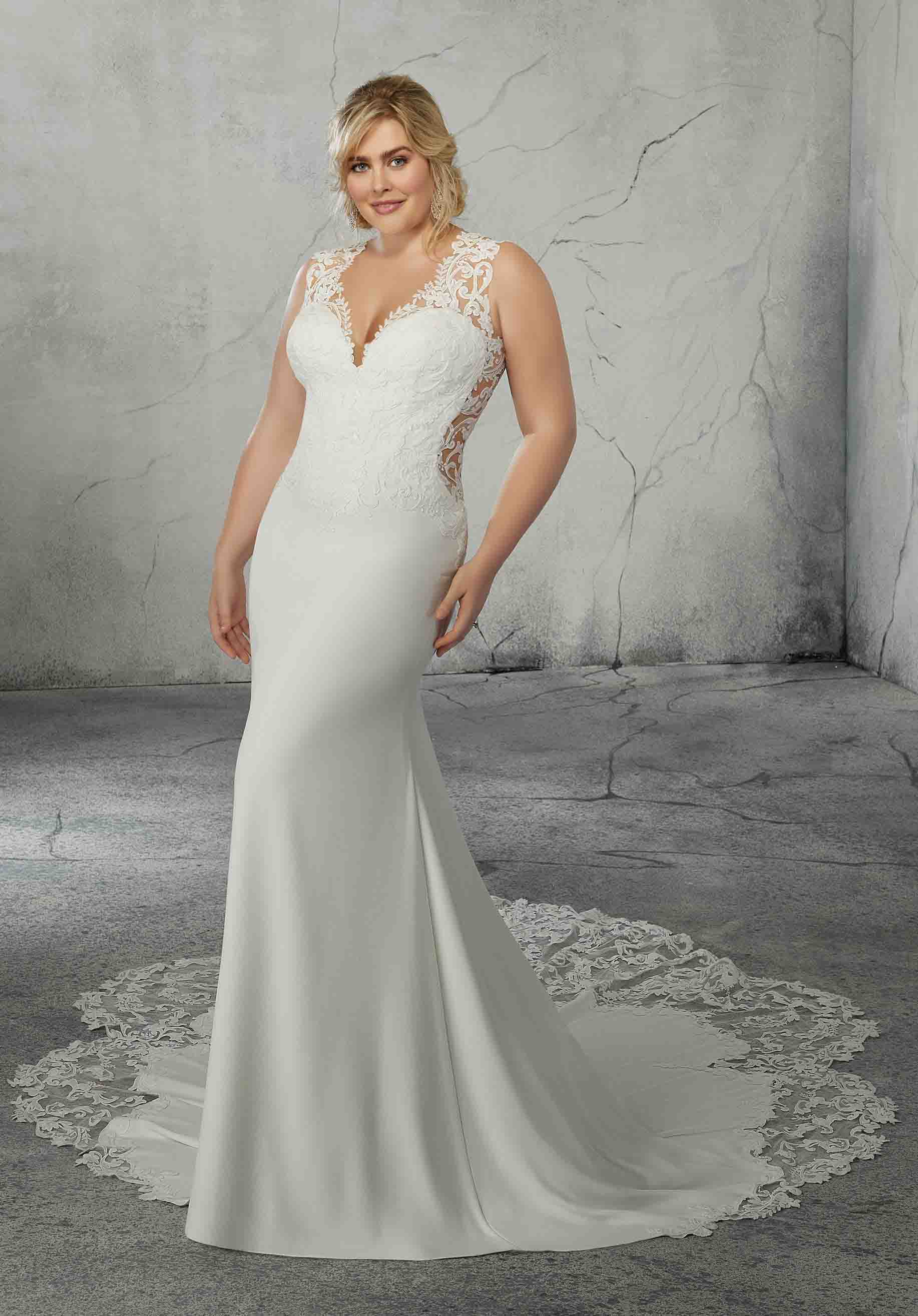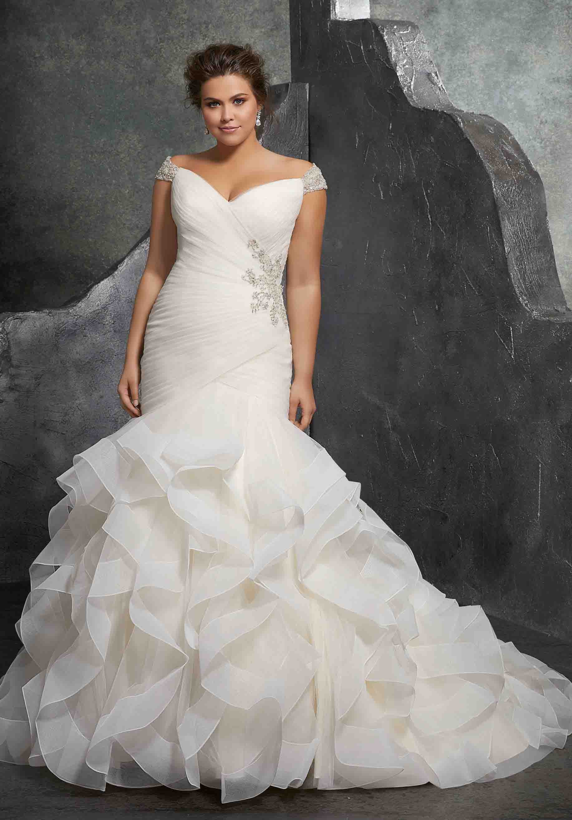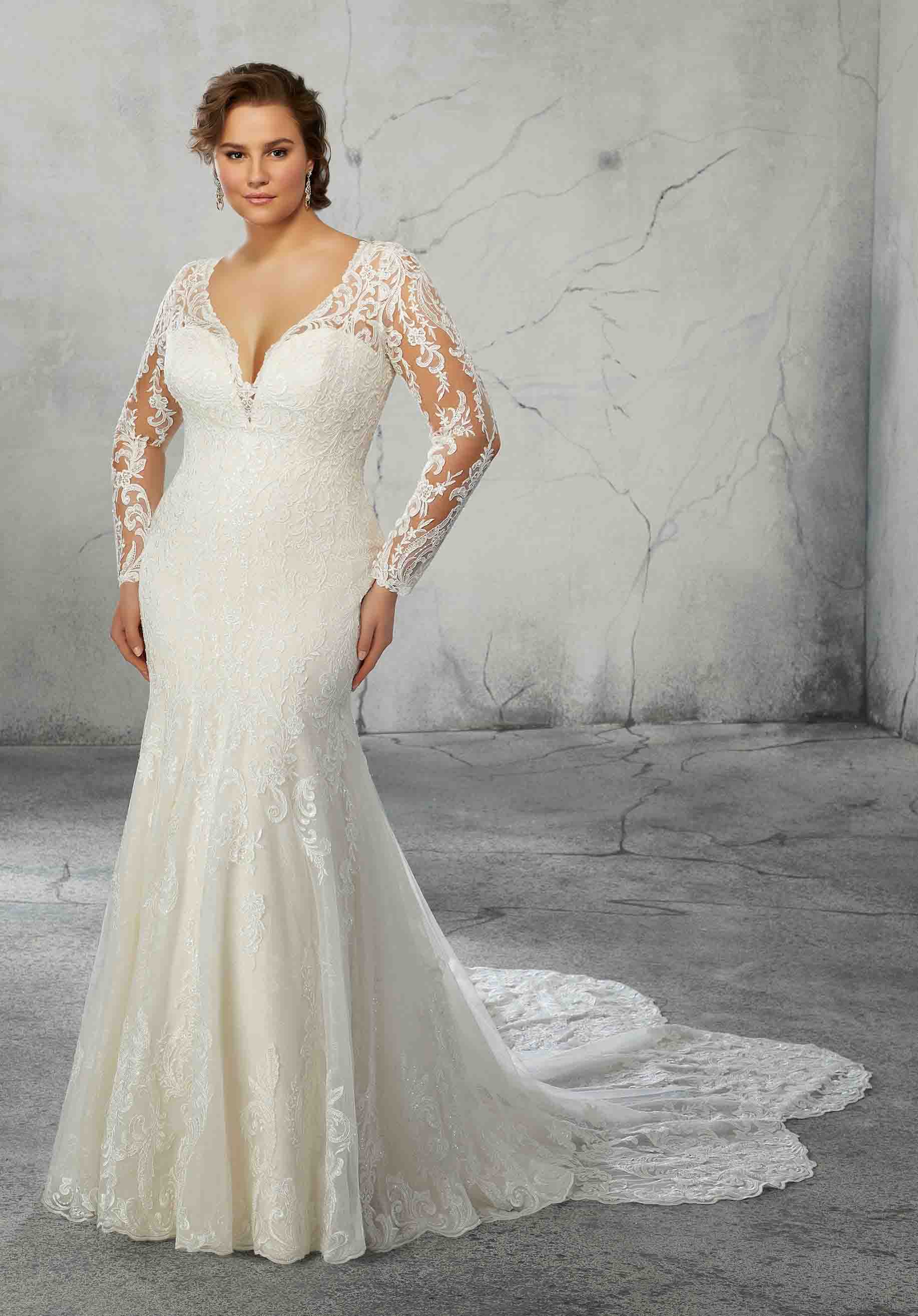 Abito da sposa in avorio dall’inconfondibile tonalità calda molto amata dalle spose. Il modello a sirena dal lungo corpetto completamente in pizzo con generosa scollatura impreziosita sia dalla velatura del pizzo all’incrocio del decolté’ in trasparenza, sia dal gioco delle applicazioni ne rende unico l’effetto. La gonna è una esplosione di tulle che scendendo dalla base del lungo corpetto, allargandosi a ruota intera magicamente fa sognare.