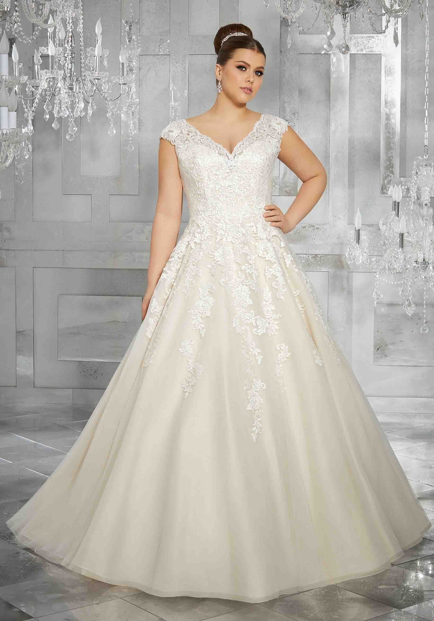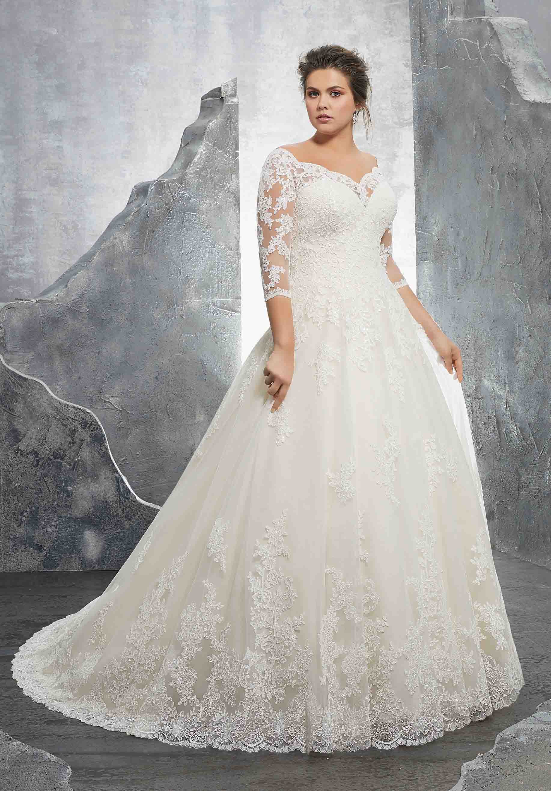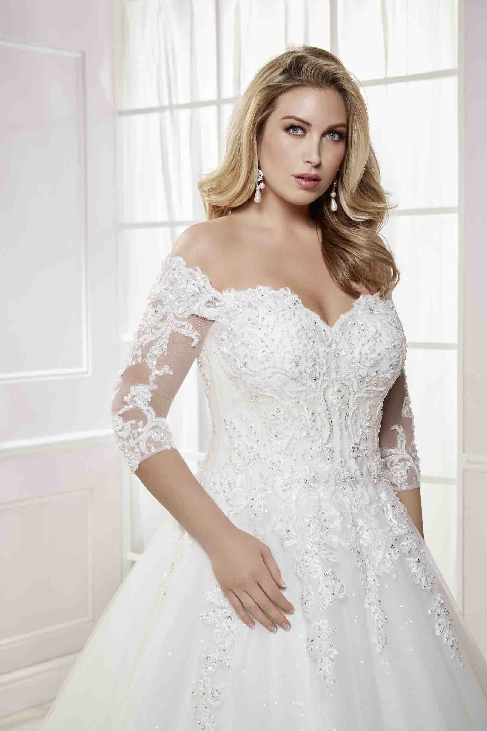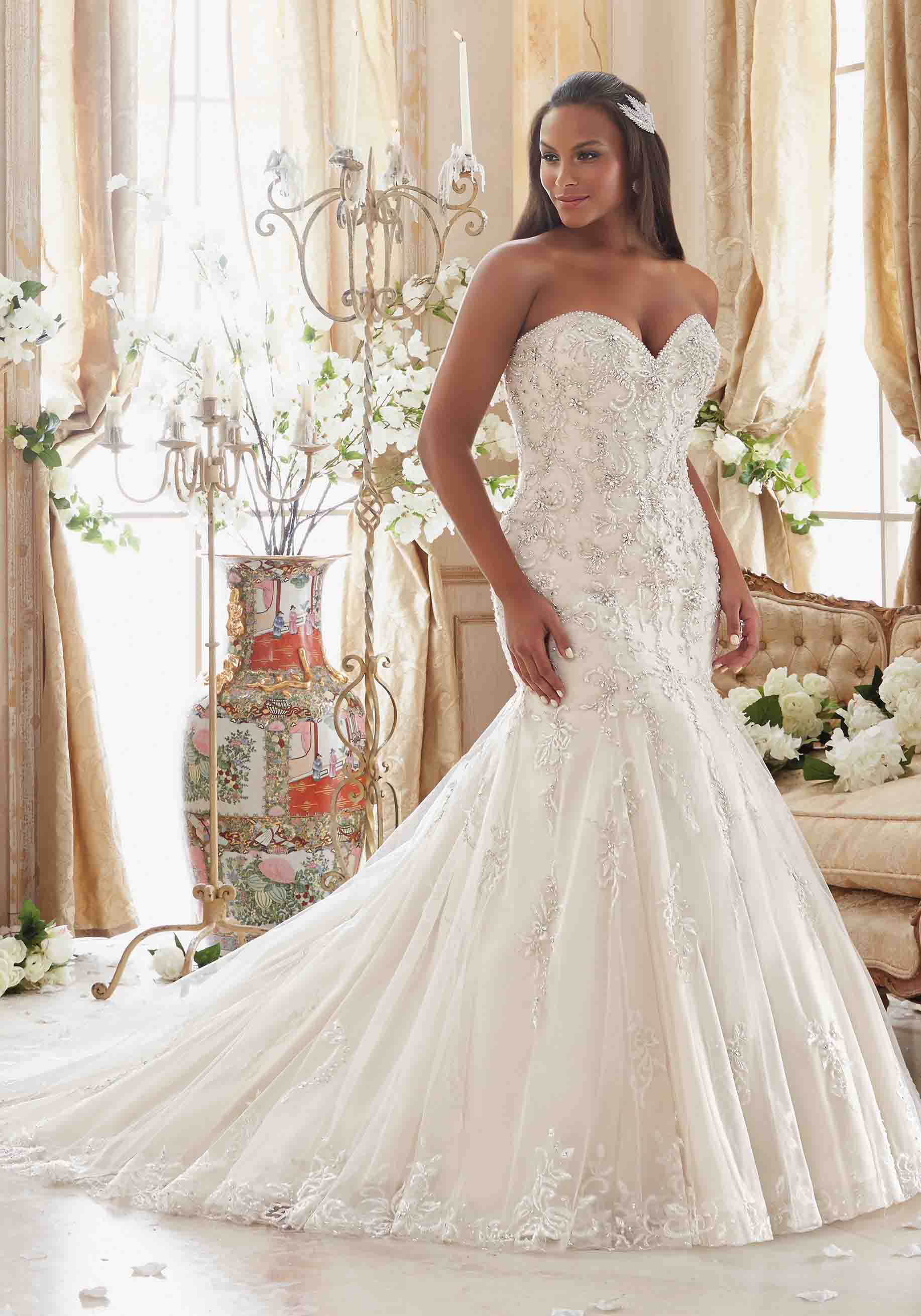 Abito da sposa in avorio dall’inconfondibile tonalità calda molto amata dalle spose. Il modello a sirena dal lungo corpetto completamente in pizzo con generosa scollatura impreziosita sia dalla velatura del pizzo all’incrocio del decolté’ in trasparenza, sia dal gioco delle applicazioni ne rende unico l’effetto. La gonna è una esplosione di tulle che scendendo dalla base del lungo corpetto, allargandosi a ruota intera magicamente fa sognare.