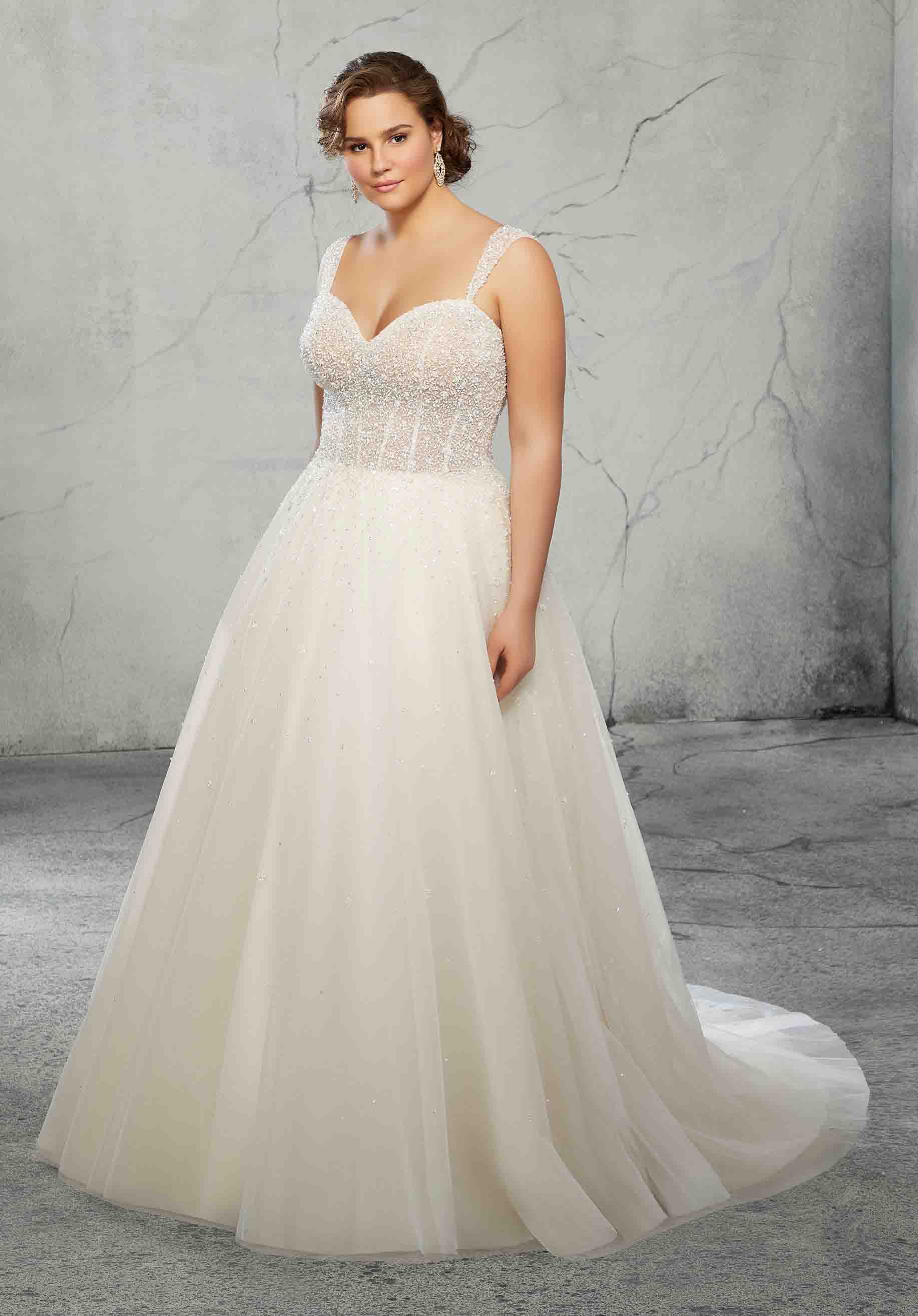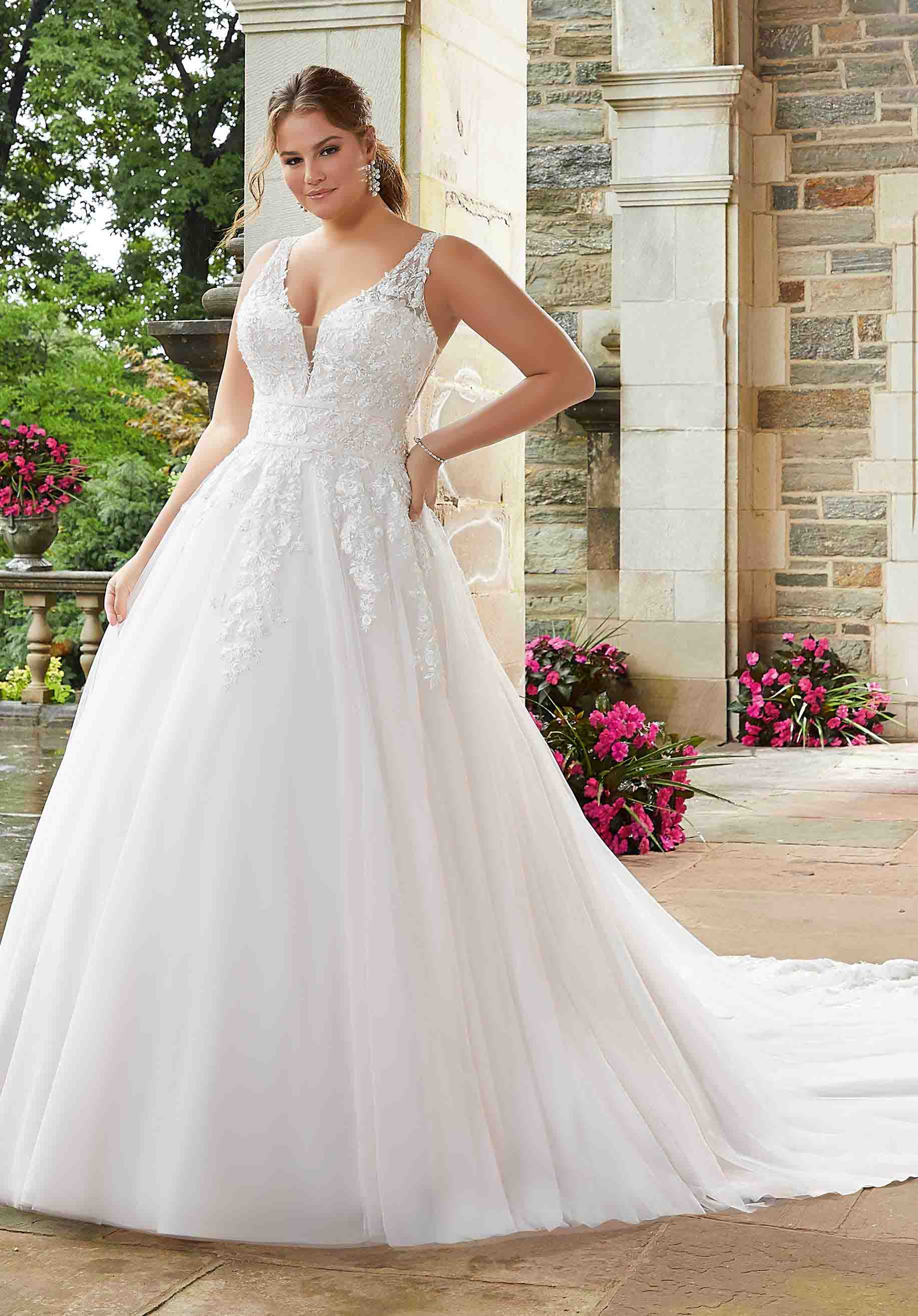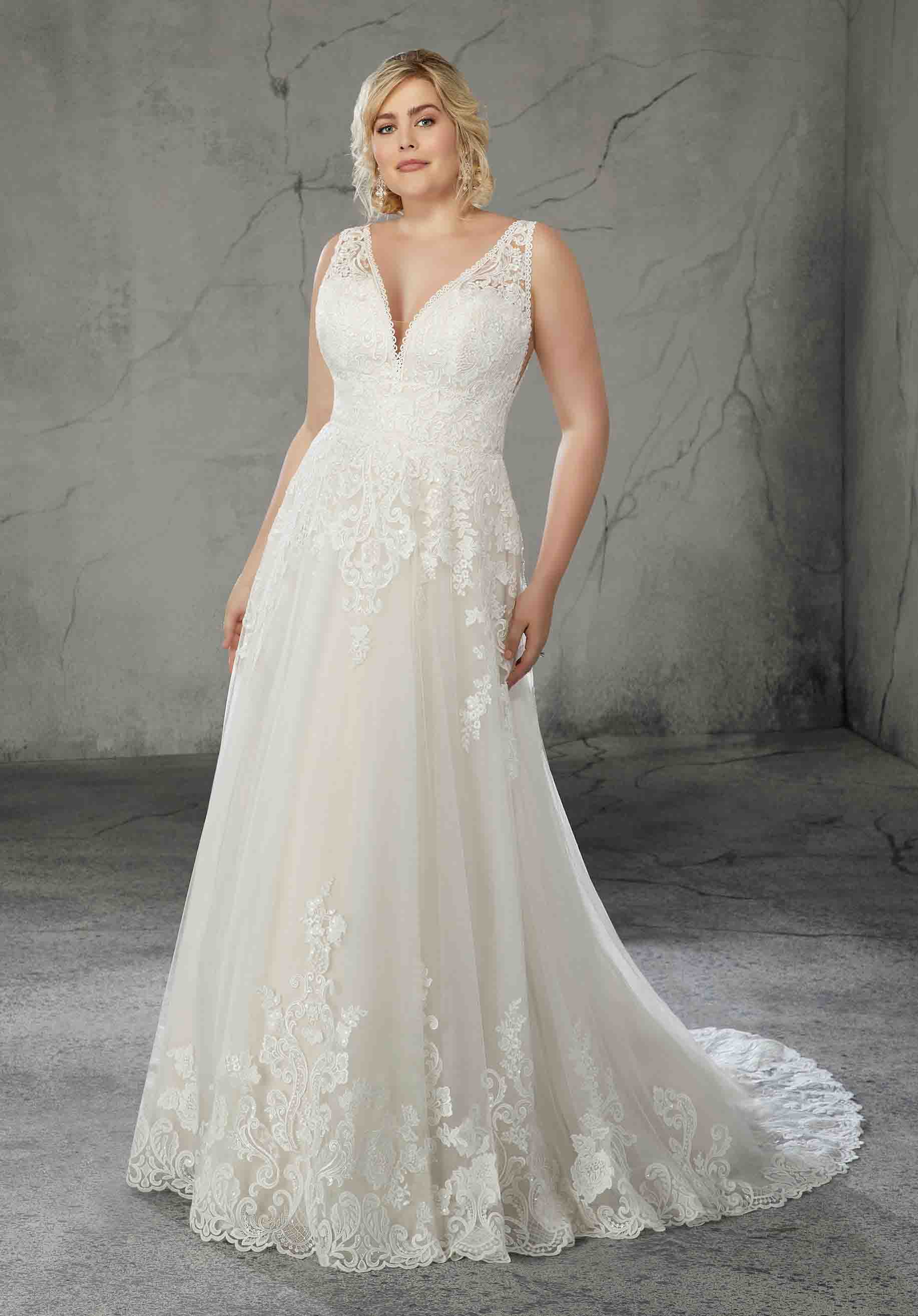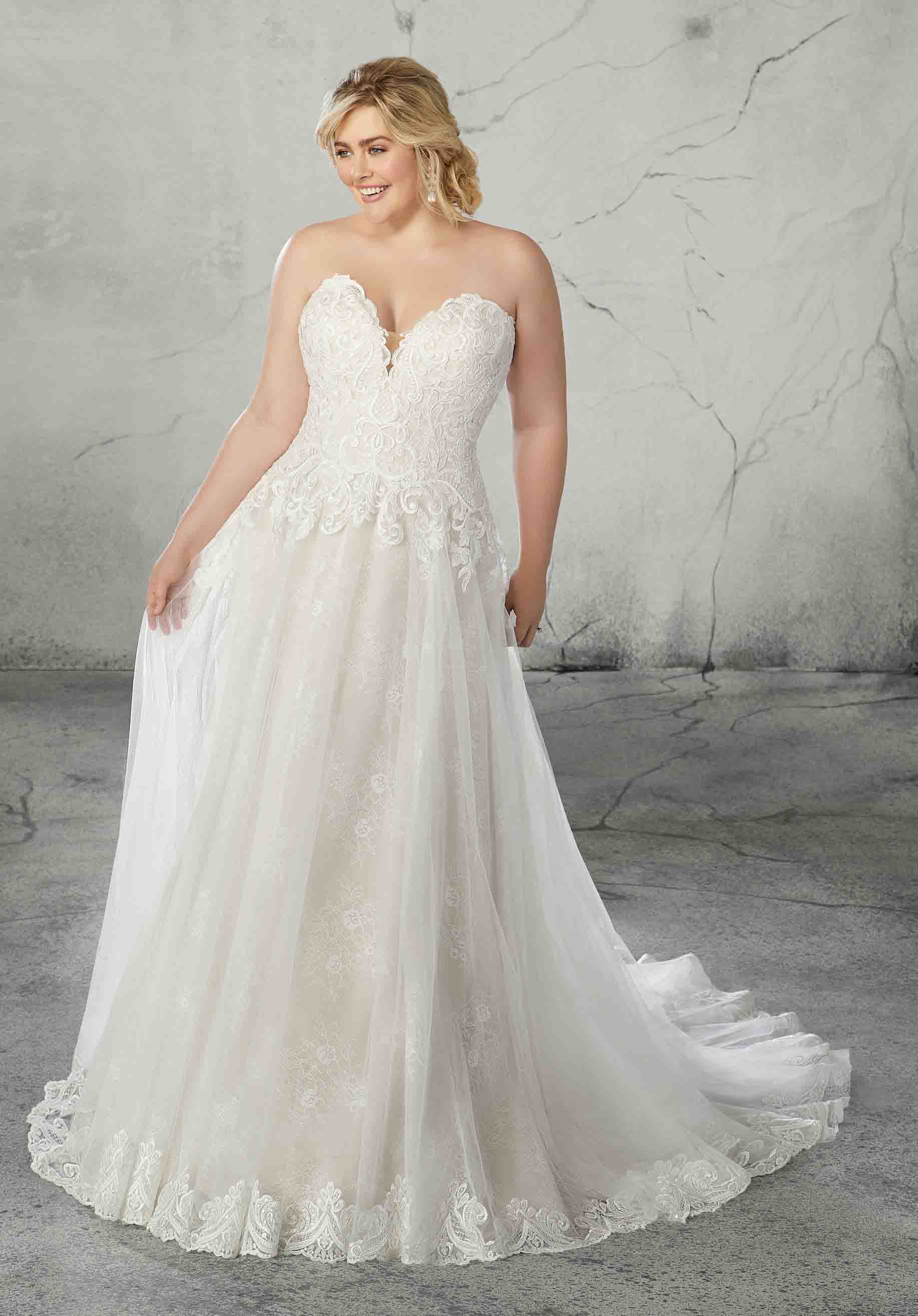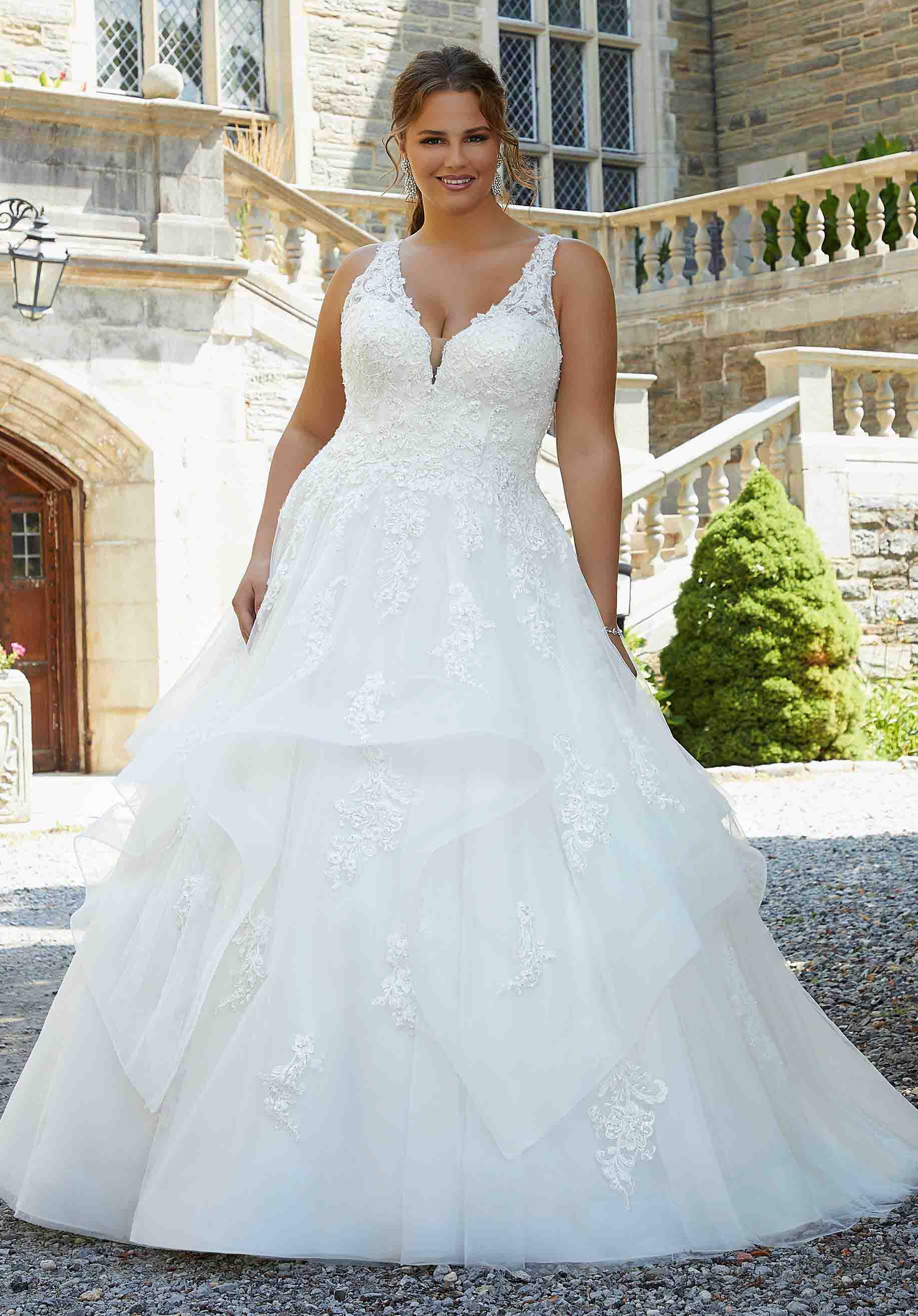 Abito da sposa in avorio dall’inconfondibile tonalità calda molto amata dalle spose. Il modello a sirena dal lungo corpetto completamente in pizzo con generosa scollatura impreziosita sia dalla velatura del pizzo all’incrocio del decolté’ in trasparenza, sia dal gioco delle applicazioni ne rende unico l’effetto. La gonna è una esplosione di tulle che scendendo dalla base del lungo corpetto, allargandosi a ruota intera magicamente fa sognare.