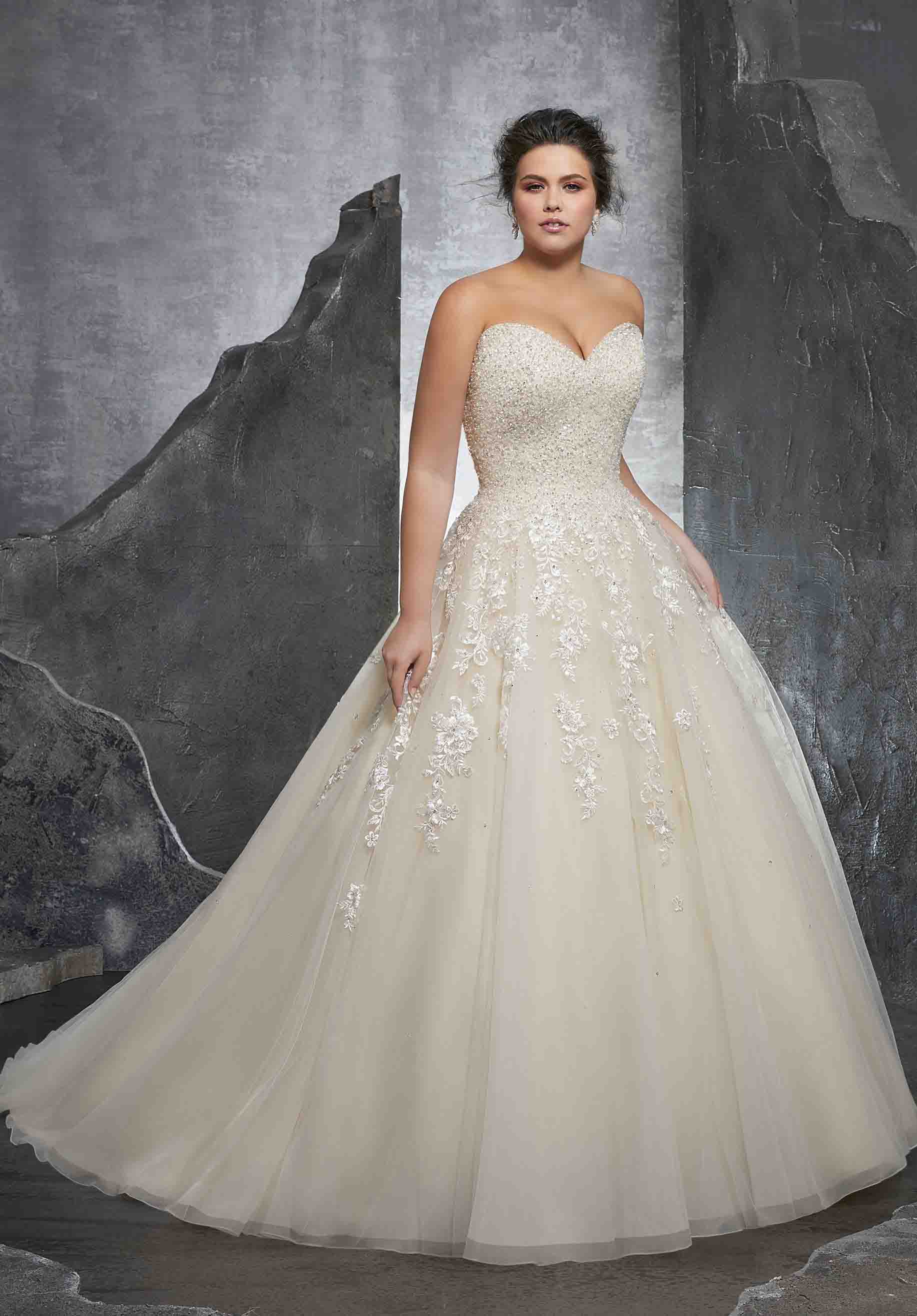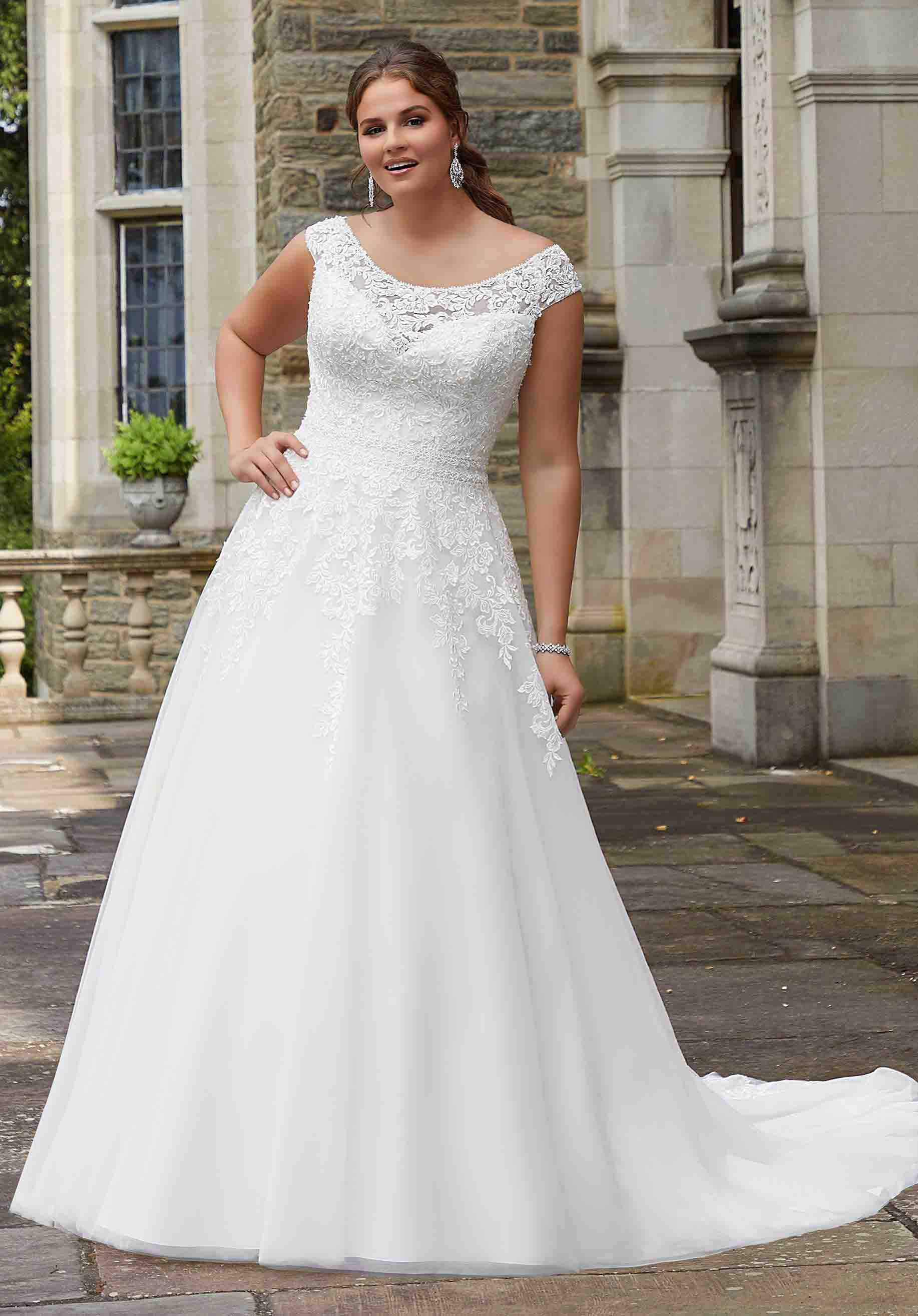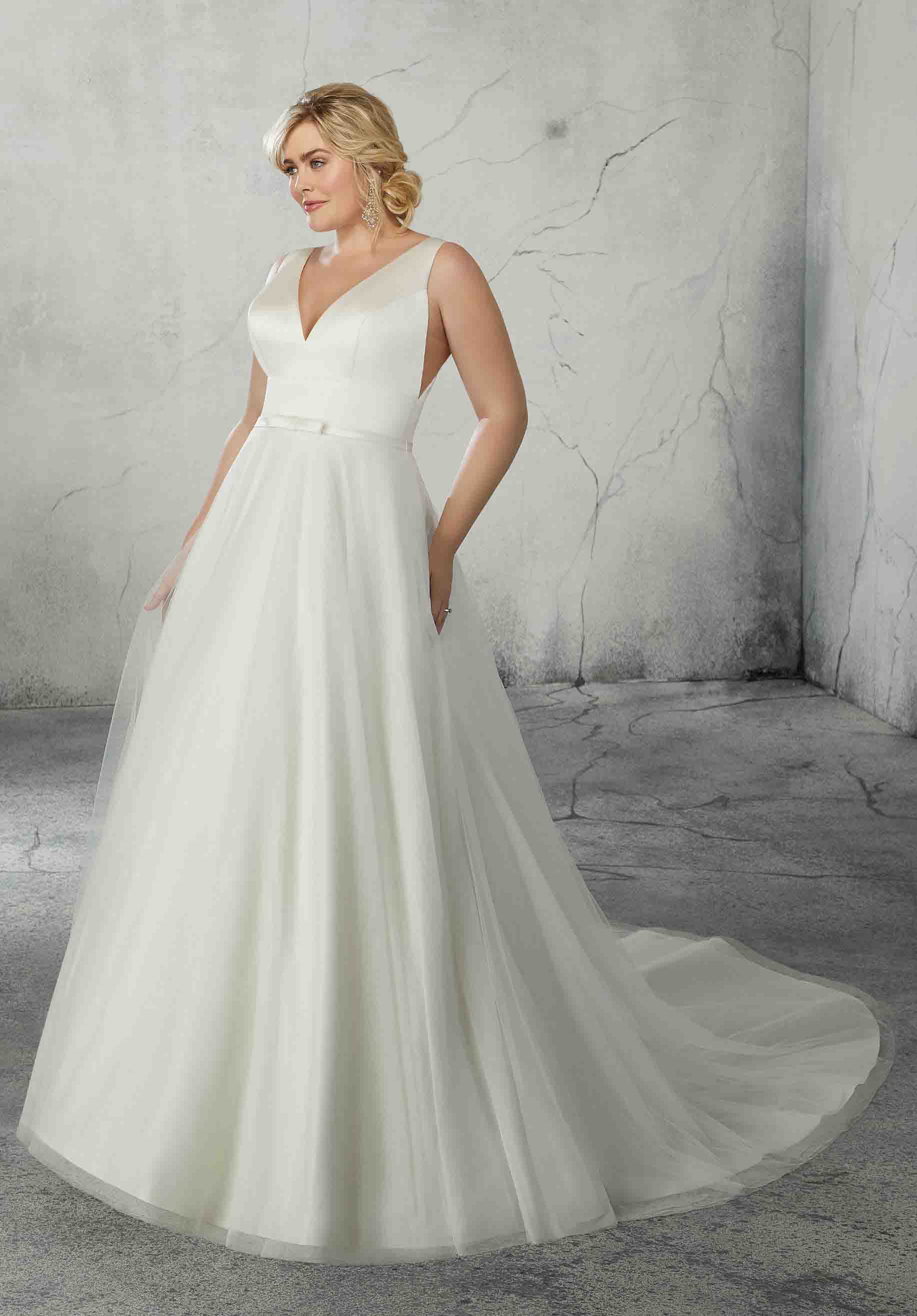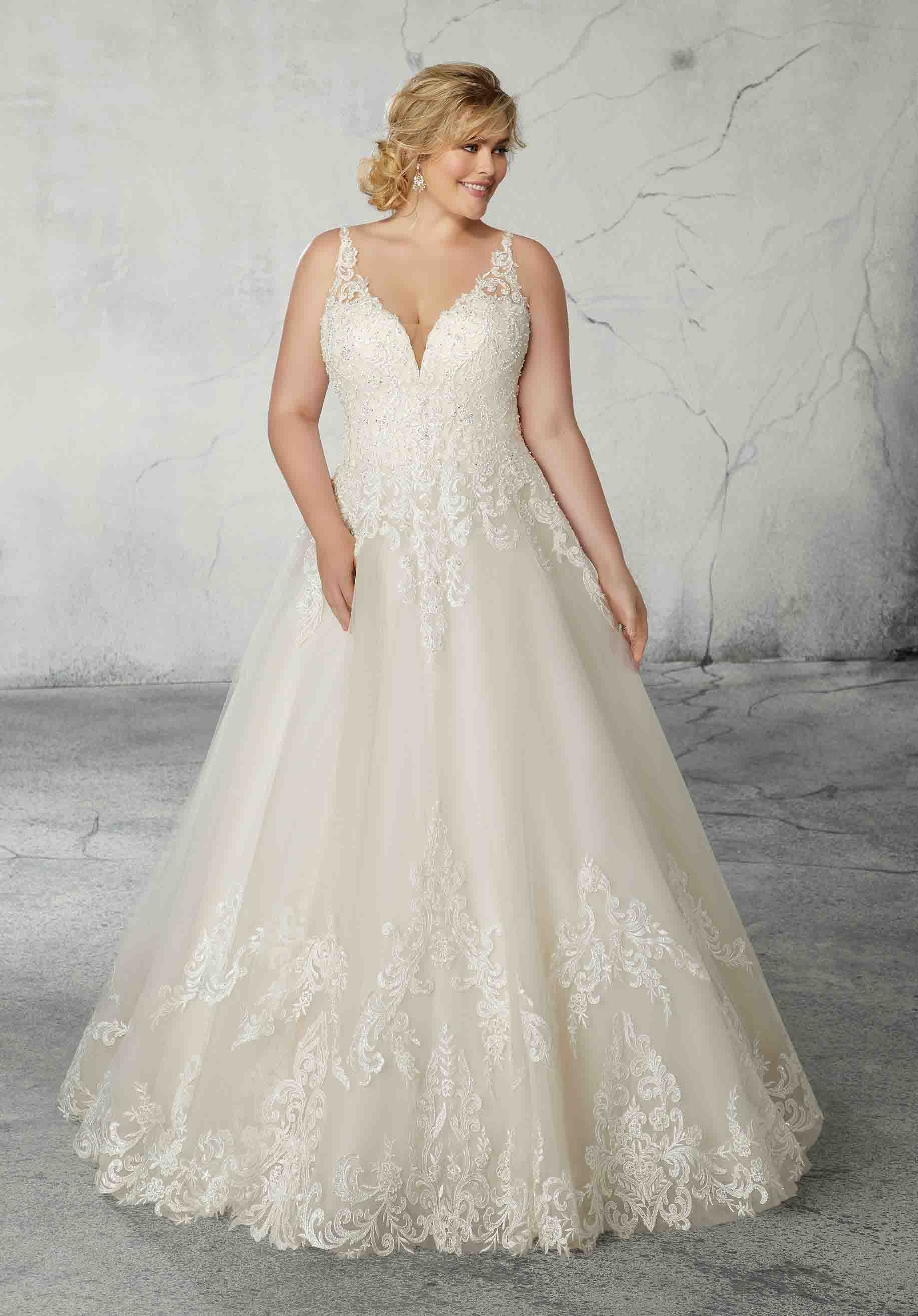 Abito da sposa in avorio dall’inconfondibile tonalità calda molto amata dalle spose. Il modello a sirena dal lungo corpetto completamente in pizzo con generosa scollatura impreziosita sia dalla velatura del pizzo all’incrocio del decolté’ in trasparenza, sia dal gioco delle applicazioni ne rende unico l’effetto. La gonna è una esplosione di tulle che scendendo dalla base del lungo corpetto, allargandosi a ruota intera magicamente fa sognare.