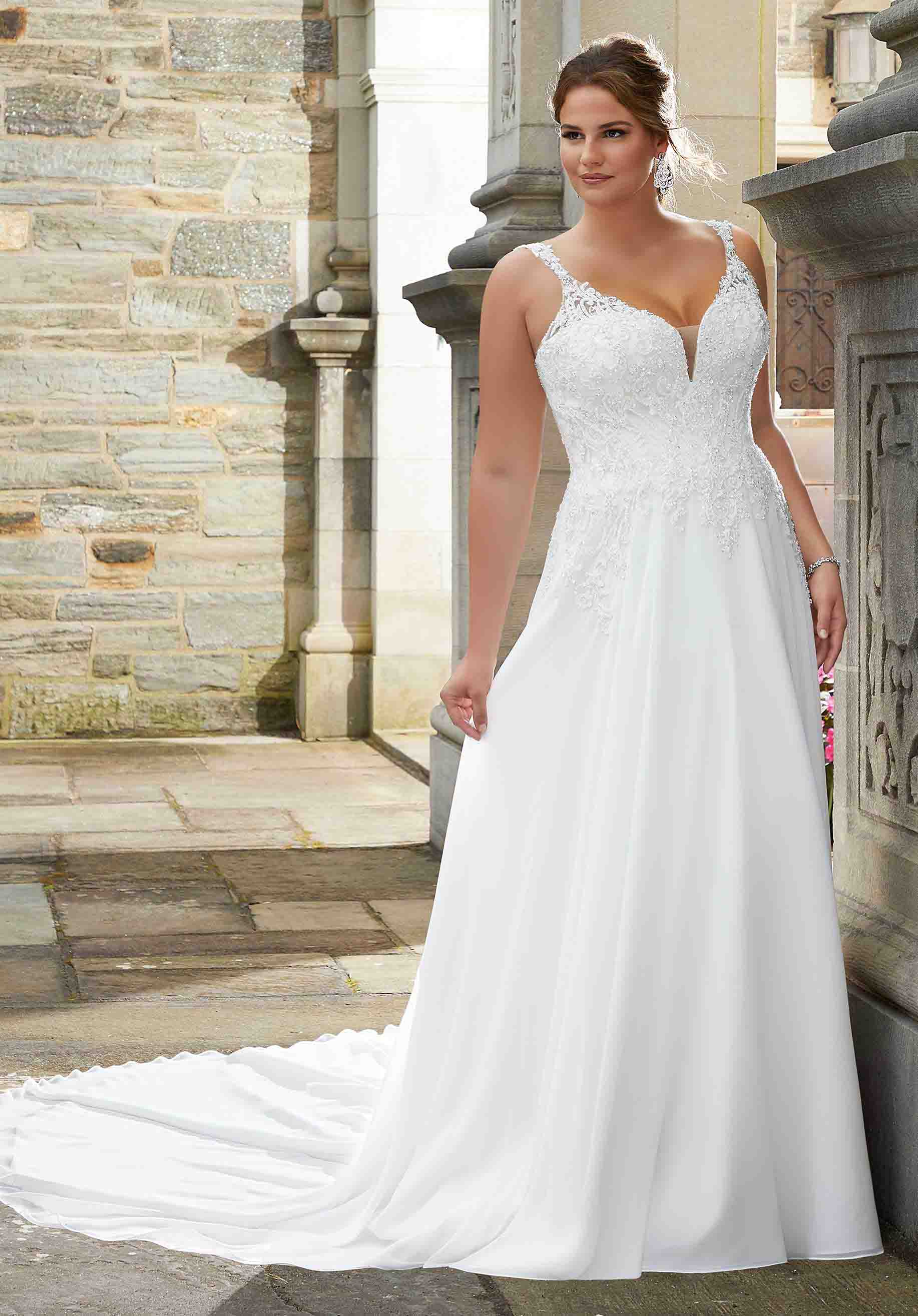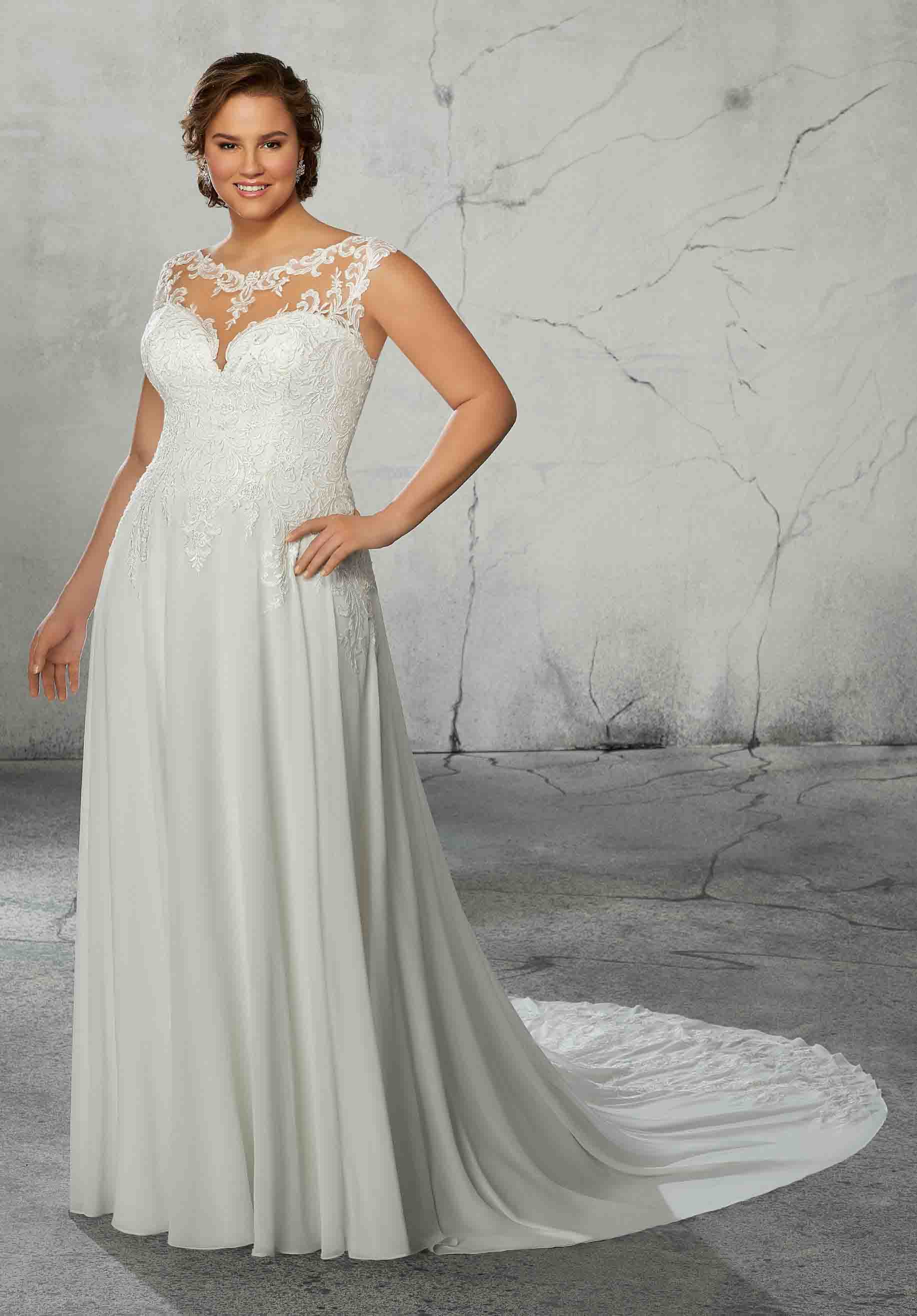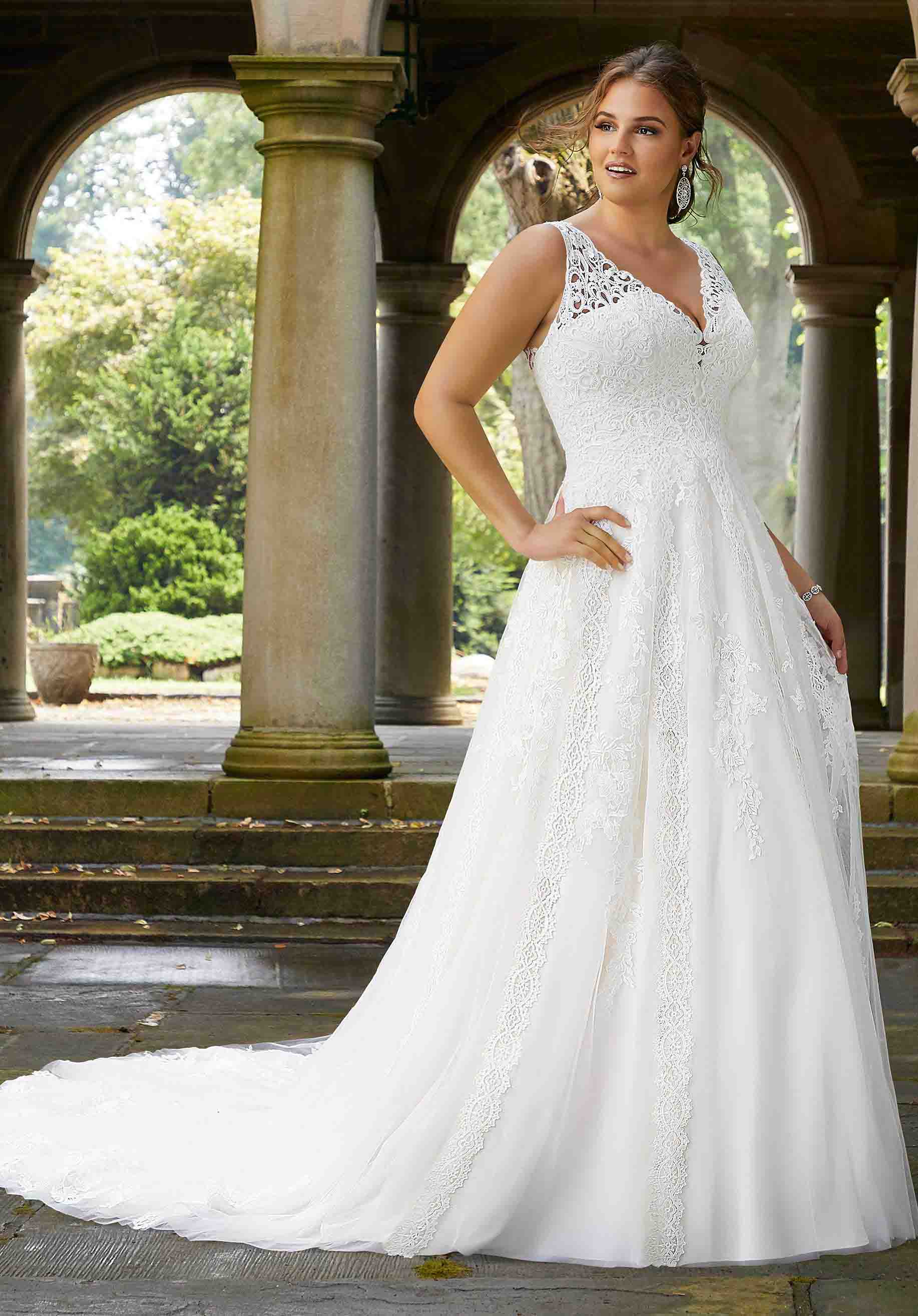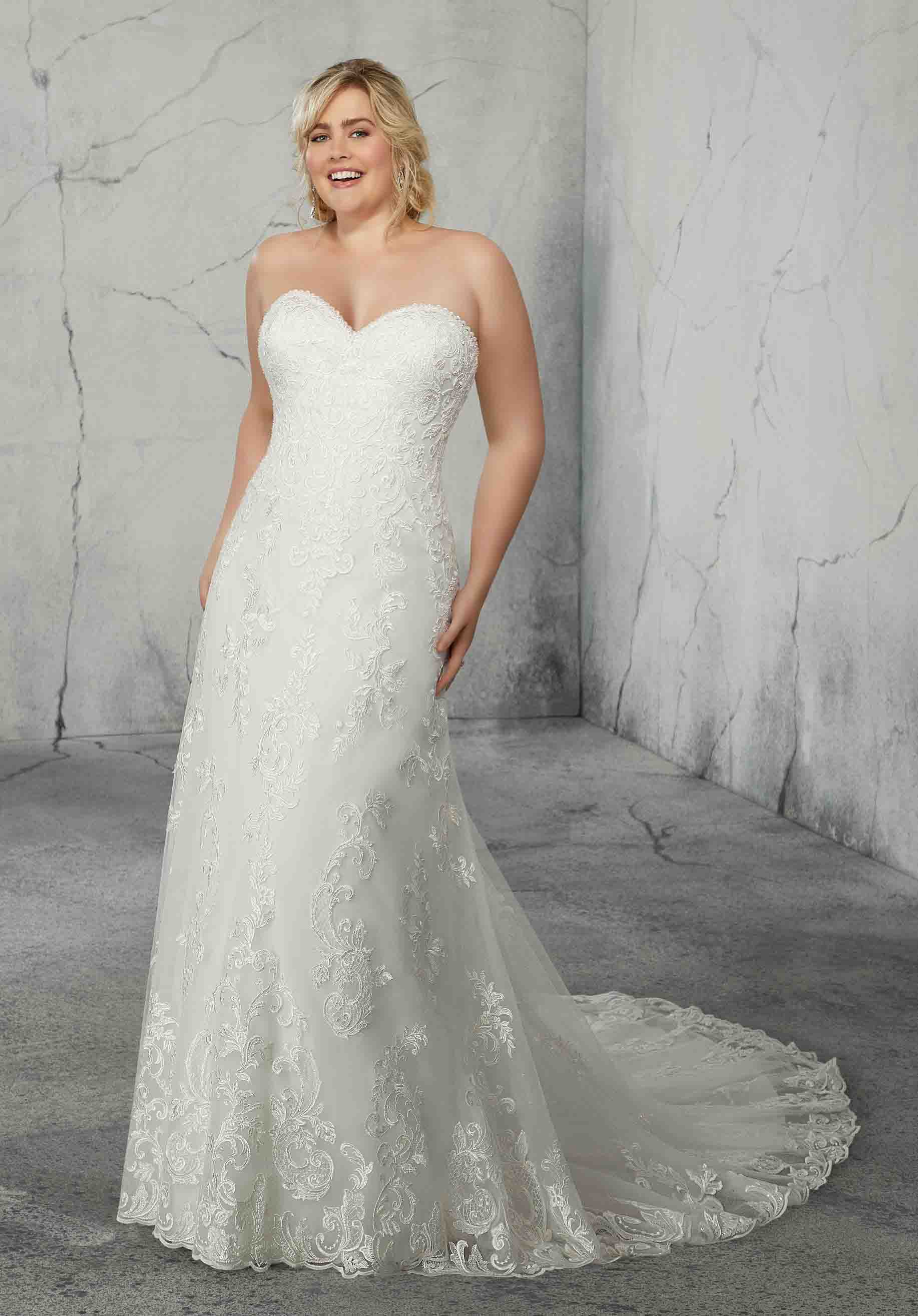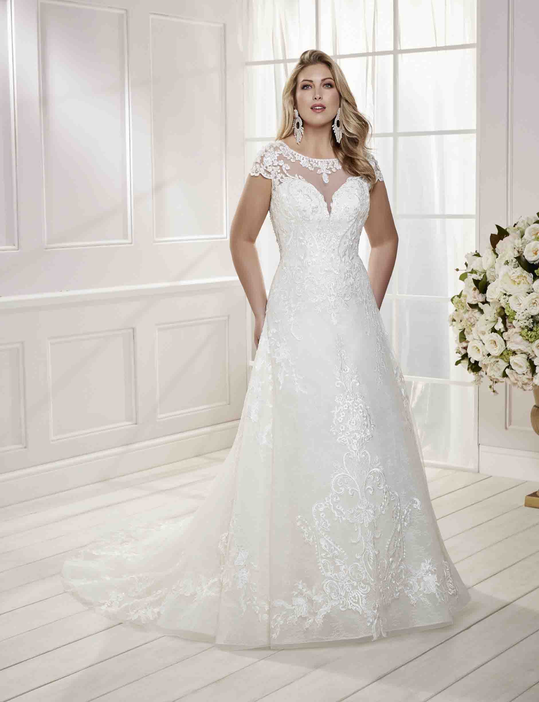 Abito da sposa in avorio dall’inconfondibile tonalità calda molto amata dalle spose. Il modello a sirena dal lungo corpetto completamente in pizzo con generosa scollatura impreziosita sia dalla velatura del pizzo all’incrocio del decolté’ in trasparenza, sia dal gioco delle applicazioni ne rende unico l’effetto. La gonna è una esplosione di tulle che scendendo dalla base del lungo corpetto, allargandosi a ruota intera magicamente fa sognare.